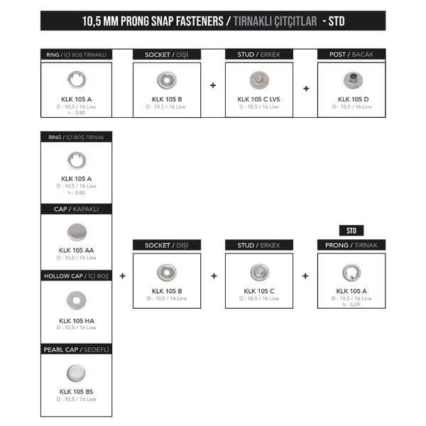 10,5 mm prong snap fastener, KLK 105